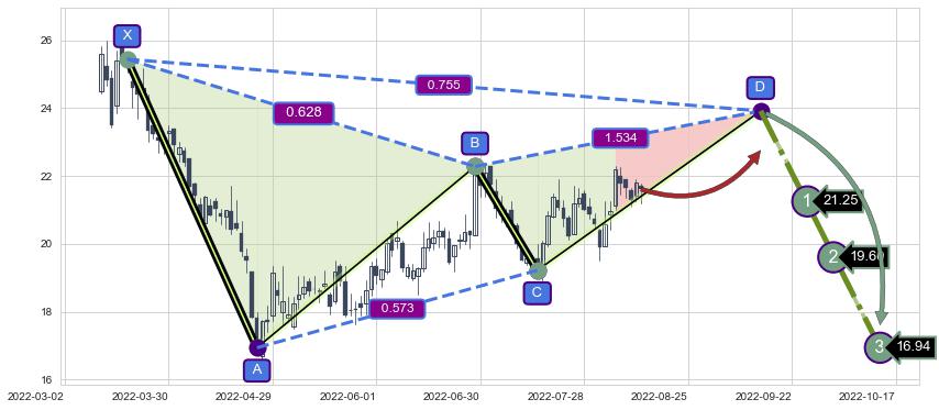 ➣ 未完成【伽利】形态起点X: 2022-03-18, 已到达C点: 2022-07-15, 预测最终D点: 2022-09-14, 共118交易日