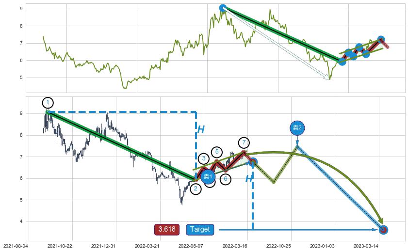 ➢ 【仅预测突破】最后价格:7.09与预测突破价格:6.76→【空间较大】后续最小【整理】第一目标价格→(2023-03-21: 3.618 )