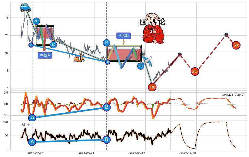 | 12 🅚:【高山滑雪】买入点 ➕ ☯️:缠论买卖点下降缠中枢AB形成后猜想拐点1买已到达,猜想后续持续拉升(均值回复) ☞ 看多信号 ⇥ 【均线】交织【图形】⇥ 综合量化分数: 76 | > |