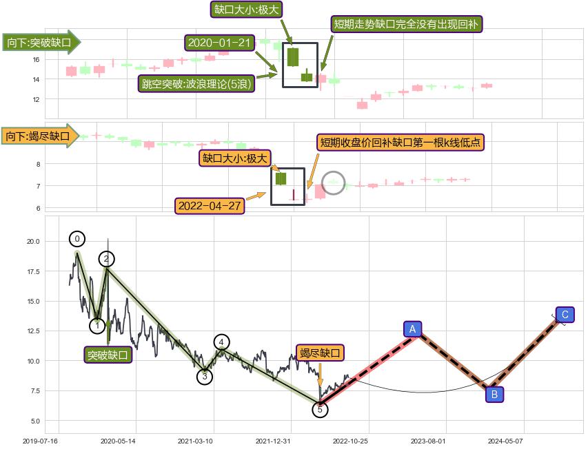 ➢ 2022-04-27形成:向下跳空【竭尽】缺口