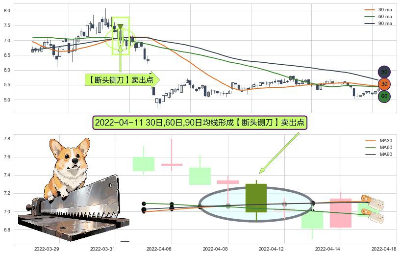 形态多维评估: ⚀ 2022-04-11日显现 30日-60日-90日均线 【断头铡刀】卖出点 看空信号,后市看跌,卖出