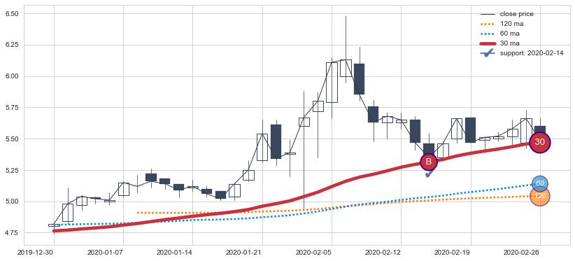 上涨趋势2019-12-30-2020-02-26,均线30确认关键支撑1处