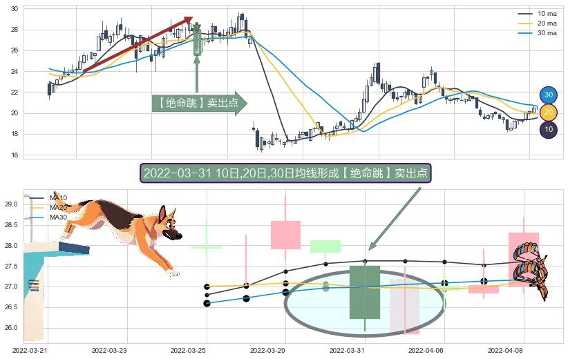⚀ 2022-03-31日显现 10日-20日-30日均线 【绝命跳】卖出点 看空信号,后市看跌,卖出