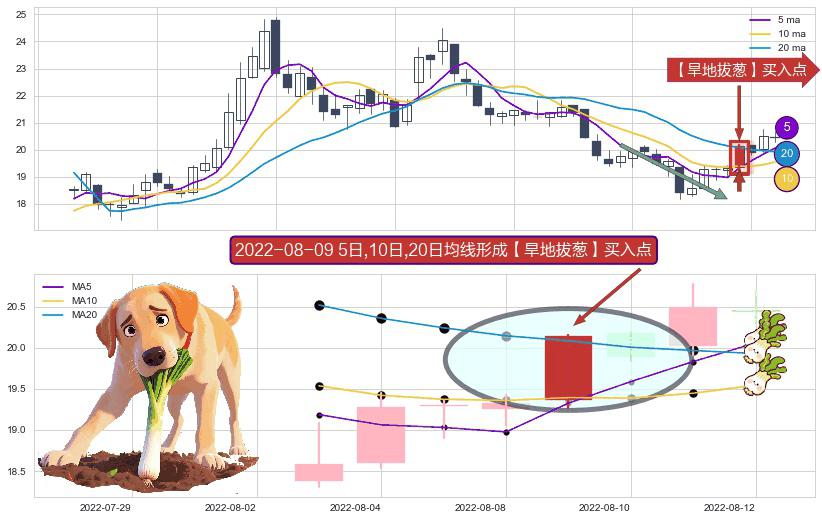 ⚀ 2022-08-09日显现 5日-10日-20日均线 【旱地拔葱】买入点 看多信号,后市看涨,买入