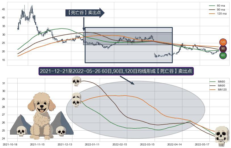 ⚀ 2021-12-22-日至2022-05-26-日显现 60日-90日-120日均线 【死亡谷】卖出点 看空信号,后市看跌,卖出
