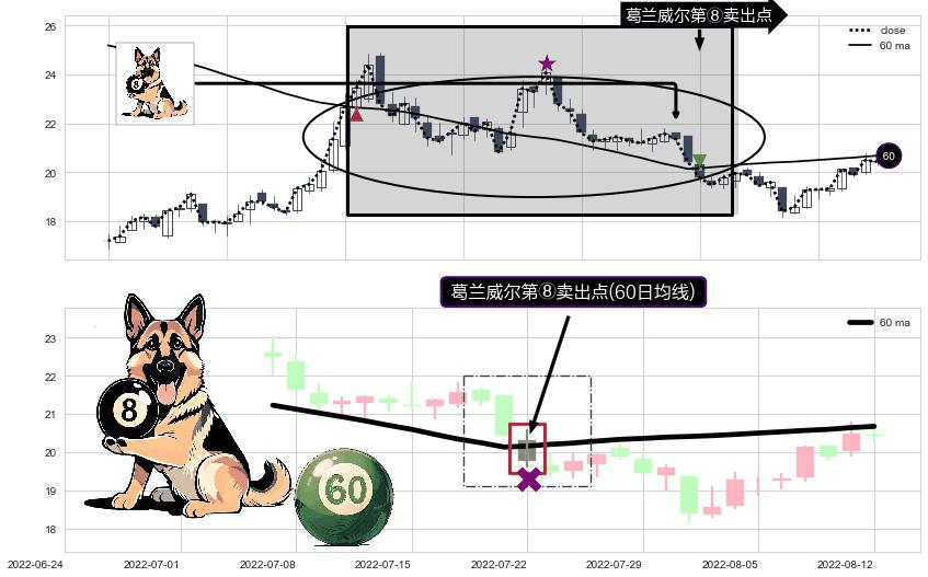 ⚀ 2022-07-22-日显现 葛兰威尔均线 60日均线 第⑧卖出点 下降趋势的中继信号,后市看跌,卖出信号