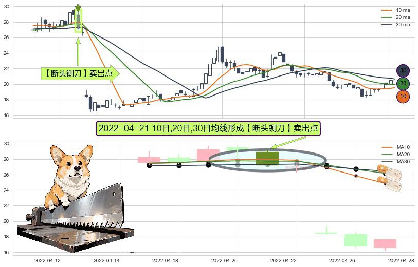 ⚀ 2022-04-21日显现 10日-20日-30日均线 【断头铡刀】卖出点 看空信号,后市看跌,卖出