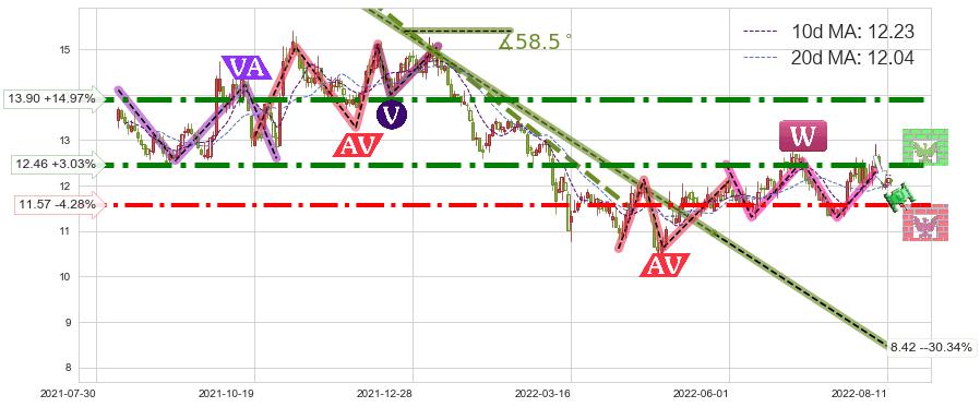 ♘ 阻力价格位12.46,可信任强度88.52%,距离最后交易2022-08-12形成的收盘价格12.09相差 +3.03%