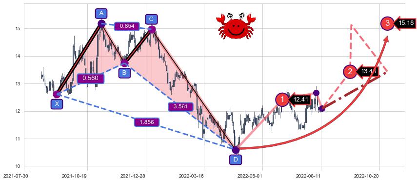➣ 已完成【螃蟹】形态起点X: 2021-09-02, 终点D: 2022-04-26, 共154交易日