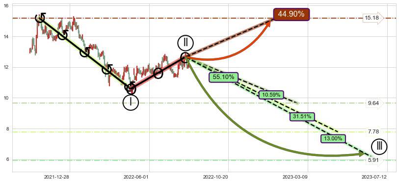 ➣ AI预测: 假定反转继续,第❷价格目标位置(2022-09-15, 13.43)