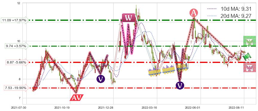 ♘ 阻力价格位9.74,可信任强度62.31%,距离最后交易2022-08-12形成的收盘价格9.40相差 +3.57%