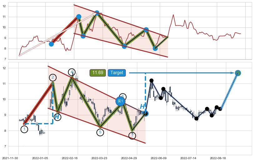 ➣ AI预测: 假定反转启动后, 第❶目标位置(2022-10-07, 9.48)