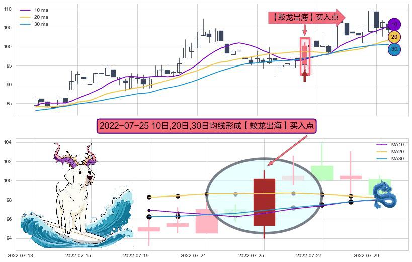 形态多维评估: ⚀ 2022-07-25日显现 10日-20日-30日均线 【蛟龙出海】买入点 看多信号,后市看涨,买入