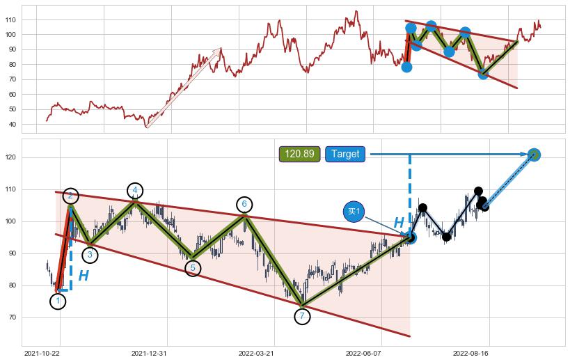 ➢ 最小中继整理涨幅→𝐇: 78.13 (𝐇楔型旗杆的长度:楔型起点→顶点)