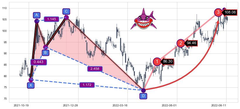 ➣ 已达成看涨【鲨鱼】形态全部的预期目标