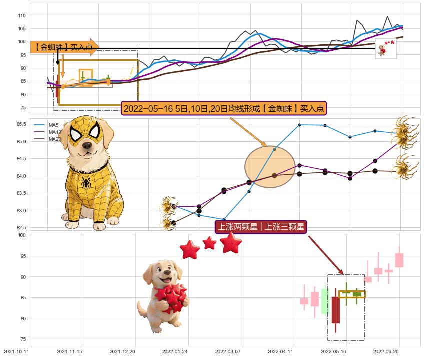 | 3 🅚:曙光初现形态 ➕ 🎢:【金蜘蛛】买入点均线组合买入点信号形成后,猜想三条均线周期内的交易者都看好后市,持续上涨 ☞ 看多信号 ⇥ 【均线】交织【🅚线】⇥ 综合量化分数: 55 | > |