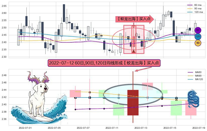 ⚀ 2022-07-12日显现 60日-90日-120日均线 【蛟龙出海】买入点 看多信号,后市看涨,买入