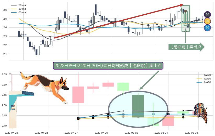 ⚀ 2022-08-02日显现 20日-30日-60日均线 【绝命跳】卖出点 看空信号,后市看跌,卖出