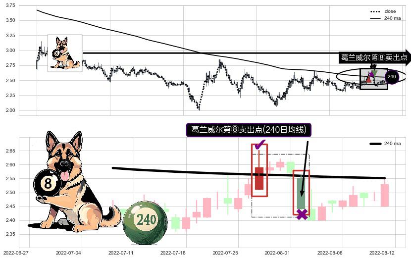 ⚀ 2022-08-02-日显现 葛兰威尔均线 240日均线 第⑧卖出点 下降趋势的中继信号,后市看跌,卖出信号