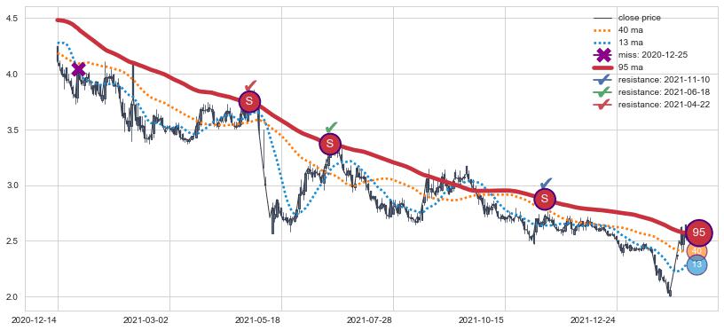 ⚁ MA20和MA30走势平行,且始终保持在短距离内,MA60始终在短中期均线上方,与短中期均线保持一定的距离,微微下行