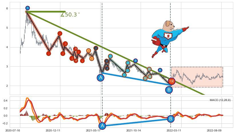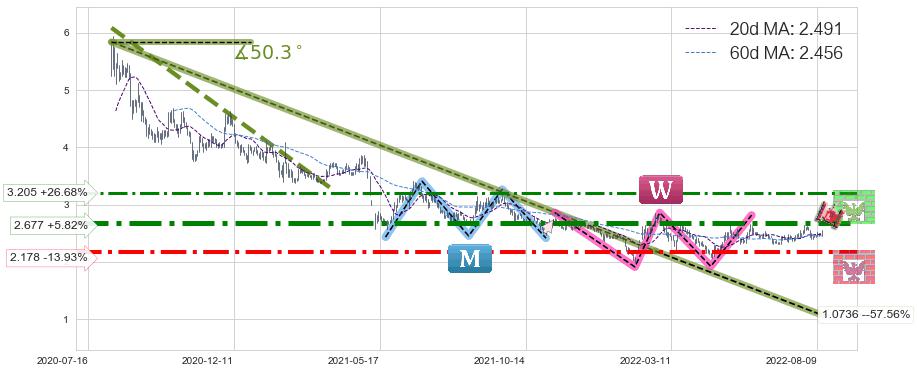 ♘ 阻力价格位2.677,可信任强度85.66%,距离最后交易2022-08-12形成的收盘价格2.530相差 +5.82%