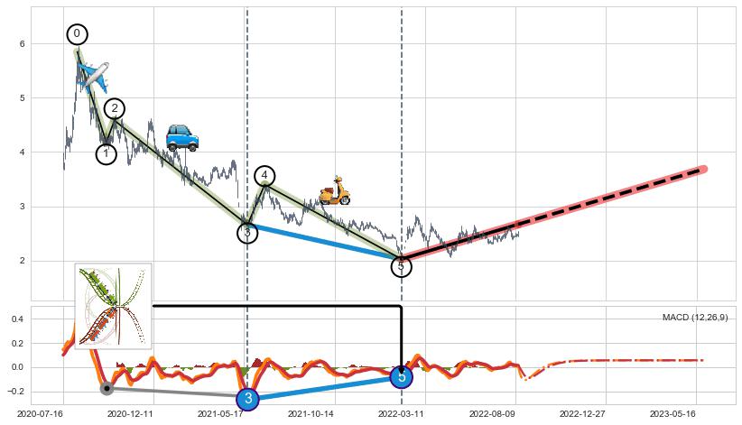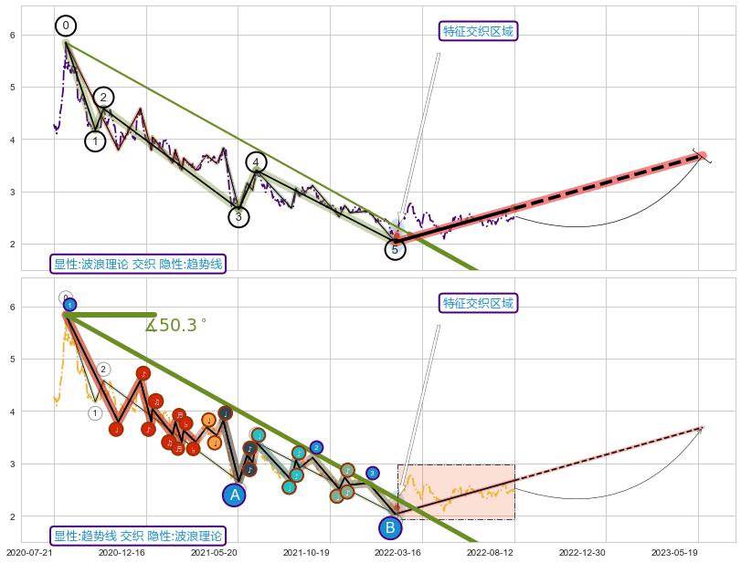 | 4 🅚:上涨两颗星 | 上涨三颗星 ➕ 🌊:波浪理论猜想下跌浪5已形成,猜想后续形成abc反弹上涨(均值回复) ☞ 看多信号 ⇥ 【🅚线】交织【图形】⇥ 综合量化分数: 51 | > |