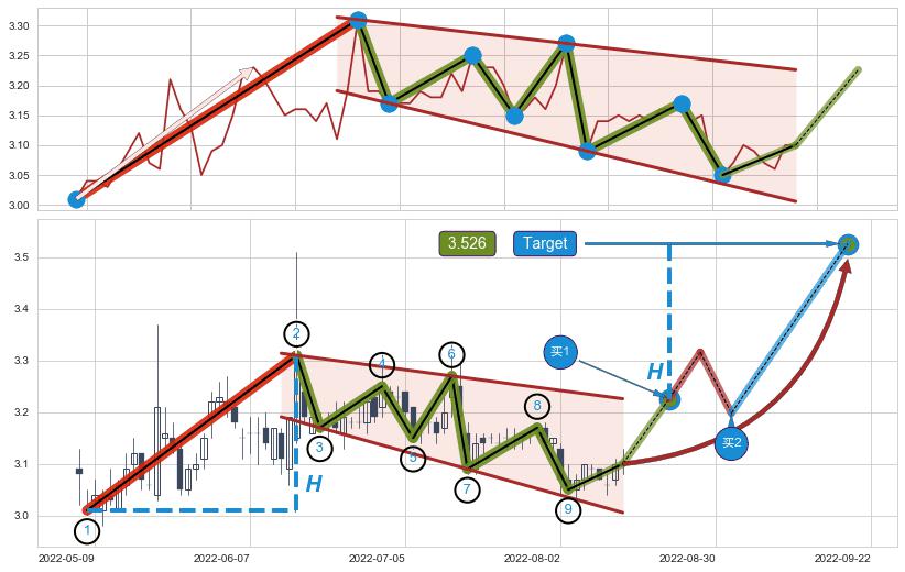 ➢ AI预测: 假定反转如期而至,第❶价格目标位置(2022-08-22, 3.149)