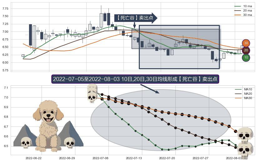 形态多维评估: ⚀ 2022-07-06-日至2022-08-03-日显现 10日-20日-30日均线 【死亡谷】卖出点 看空信号,后市看跌,卖出