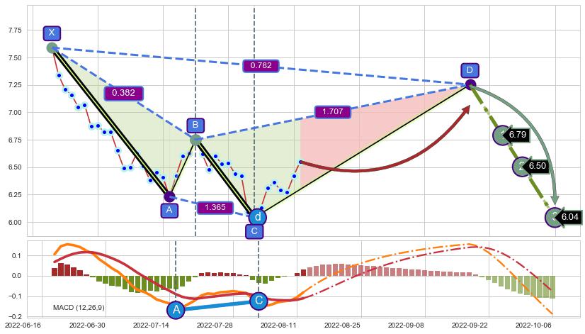 ➣ 未完成【赛福】形态起点X: 2022-06-21, 已到达C点: 2022-08-03, 预测最终D点: 2022-09-19, 共65交易日