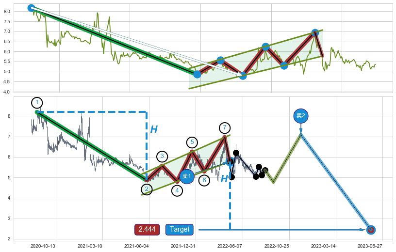 ➣ 最小中继整理跌幅→𝐇: 3.330 (𝐇旗杆的长度:旗杆起点→顶点)