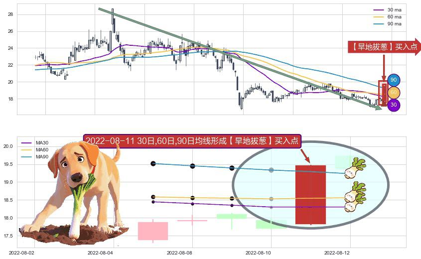 形态多维评估: ⚀ 2022-08-11日显现 30日-60日-90日均线 【旱地拔葱】买入点 看多信号,后市看涨,买入