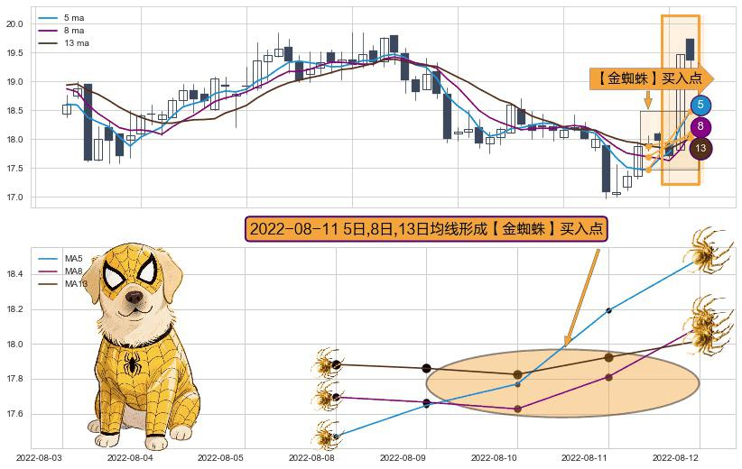 形态多维评估: ⚀ 2022-08-11日显现 5日-8日-13日均线 【金蜘蛛】买入点 看多信号,后市看涨,买入