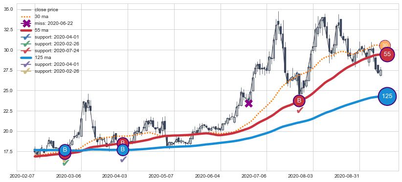 上涨趋势2020-02-07-2020-09-11,均线125, 55确认关键支撑3处