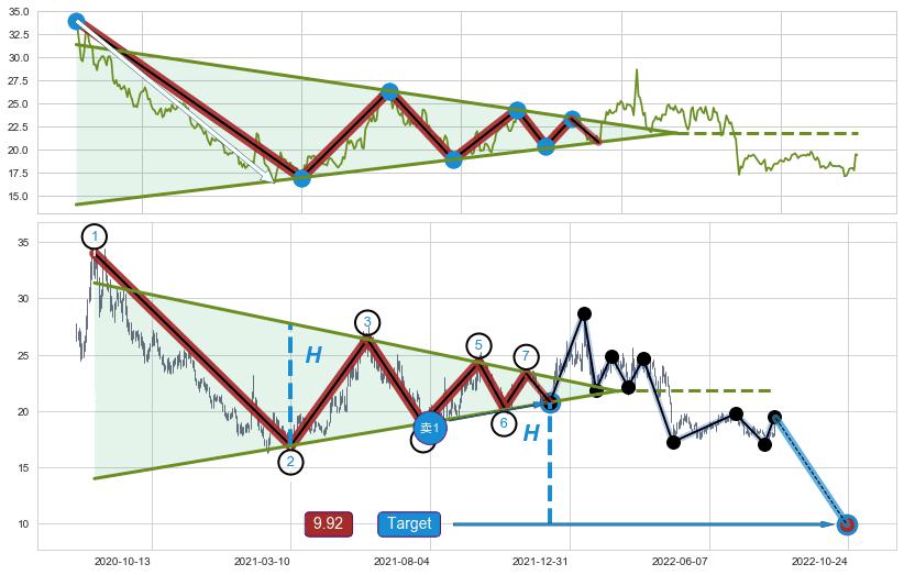 ➣ 【已确认突破】下降【对称】三角形整理 起点:2020-08-07,突破点:2021-12-13,形态共328交易日