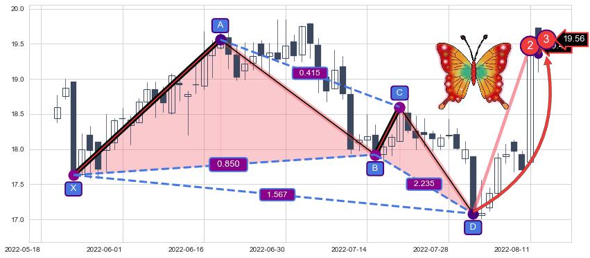 ➣ 已完成【蝴蝶】形态起点X: 2022-05-24, 终点D: 2022-08-02, 共50交易日