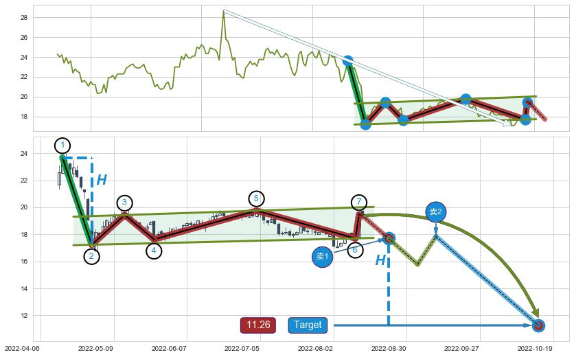 ➣ 最小中继整理跌幅→𝐇: 6.45 (𝐇旗杆的长度:旗杆起点→顶点)