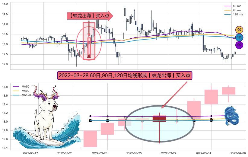 ⚀ 2022-03-28日显现 60日-90日-120日均线 【蛟龙出海】买入点 看多信号,后市看涨,买入