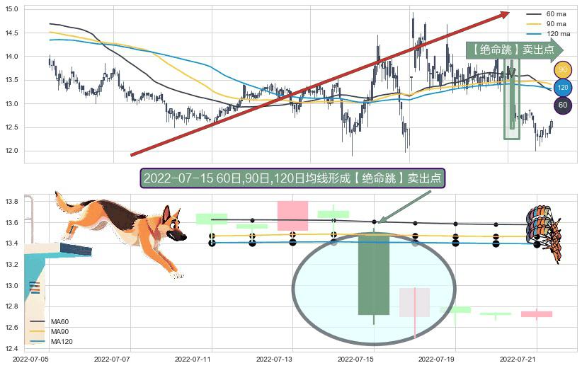 ⚀ 2022-07-15日显现 60日-90日-120日均线 【绝命跳】卖出点 看空信号,后市看跌,卖出