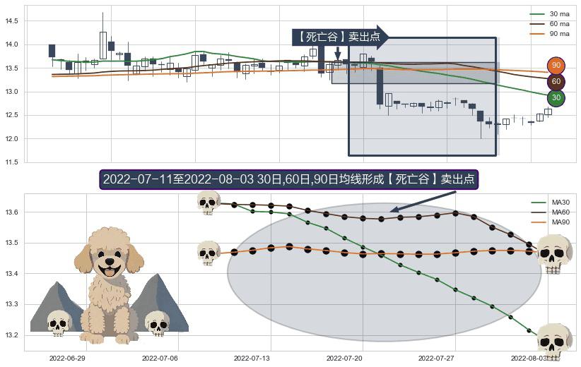 ⚀ 2022-07-12-日至2022-08-03-日显现 30日-60日-90日均线 【死亡谷】卖出点 看空信号,后市看跌,卖出