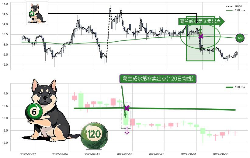 ⚀ 2022-07-15-日显现 葛兰威尔均线 120日均线 第⑥卖出点 走势反转见顶信号,后市看跌,卖出信号
