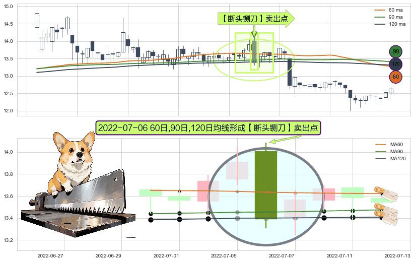 ⚀ 2022-07-06日显现 60日-90日-120日均线 【断头铡刀】卖出点 看空信号,后市看跌,卖出