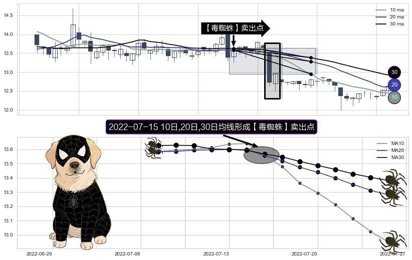 ⚀ 2022-07-15日显现 10日-20日-30日均线 【毒蜘蛛】卖出点 看空信号,后市看跌,卖出