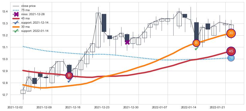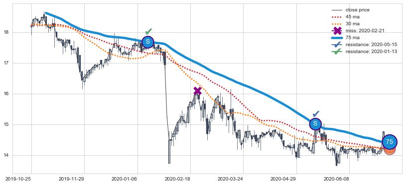 ⚃ 在破位点附近ma走势已有下垂迹象,稍后的走势中ma下降趋势明显,信号【可信度高】