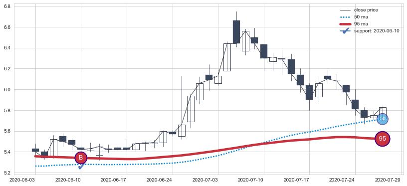 上涨趋势2020-06-03-2020-07-29,均线95确认关键支撑1处