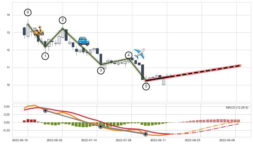 | 2 🅚:曙光初现形态 ➕ 🌊:波浪理论猜想下跌浪5已形成,猜想后续形成abc反弹上涨(均值回复) ☞ 看多信号 ⇥ 【🅚线】交织【图形】⇥ 综合量化分数: 52 | > |