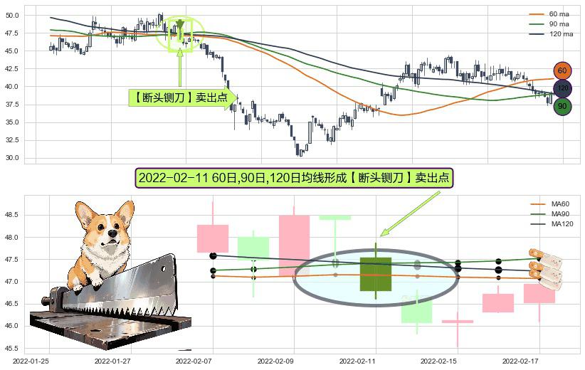 形态多维评估: ⚀ 2022-02-11日显现 60日-90日-120日均线 【断头铡刀】卖出点 看空信号,后市看跌,卖出