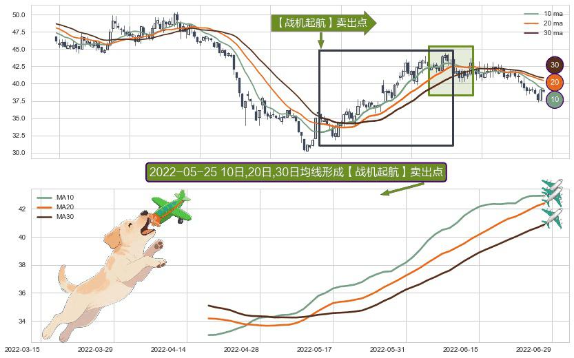 形态多维评估: ⚀ 2022-04-19日-2022-06-28日显现 10日-20日-30日均线 【战机起航】卖出点 看空信号,后市看跌,卖出
