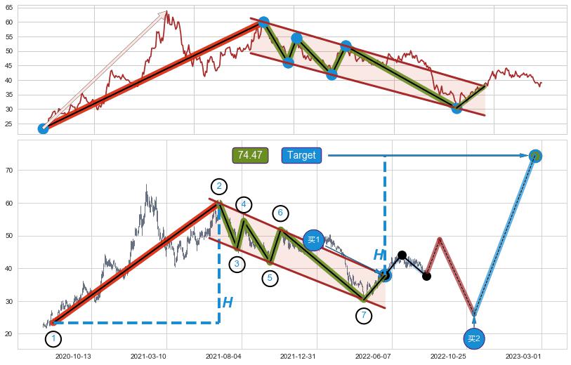 ➢ AI预测: 假定反转继续,第❸价格目标位置(2023-01-02, 63.78)