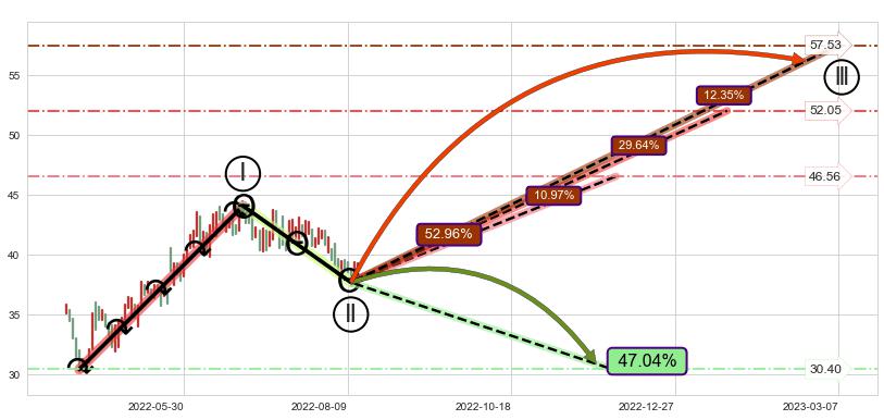 ➣ AI预测: 假定反转继续,第❷价格目标位置(2022-10-20, 51.03)