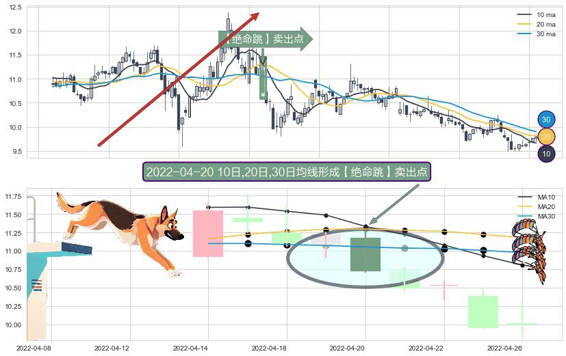⚀ 2022-04-20日显现 10日-20日-30日均线 【绝命跳】卖出点 看空信号,后市看跌,卖出